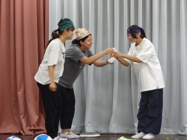 年少さんは「○×ゲーム」、年中さんはクラス対抗「手渡しバトンパスリレー」で盛り上がり、その後、クラス毎に「お名前集めゲーム」で親睦を深めました。