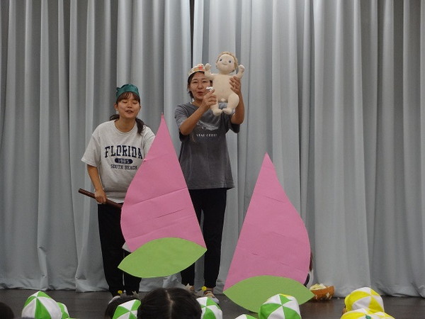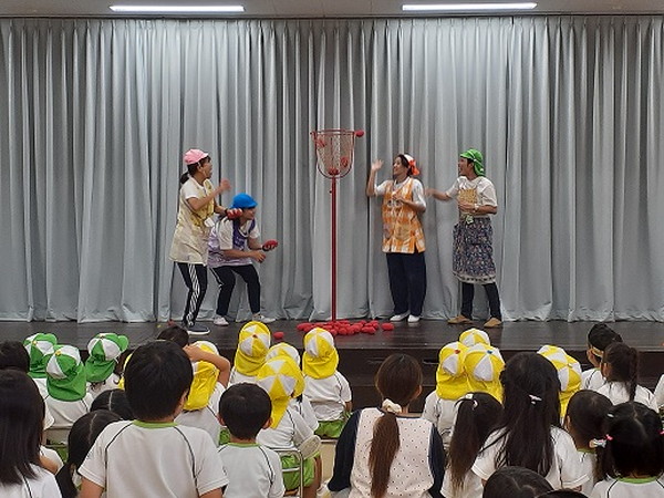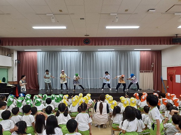 午後には、未就園児の親子の皆様をご招待して、人形劇を楽しんでいただきました。園児たちの鑑賞した演目と違って、少し短くやさしい内容で飽きないように工夫してくださり、親子での楽しいひと時を味わっていらっしゃいました。