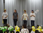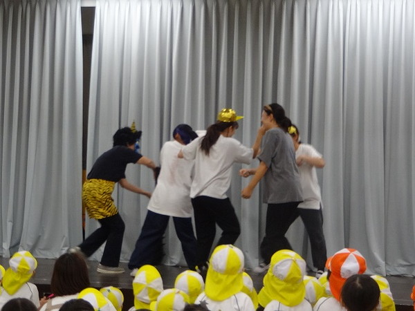 そして、先生達からの出し物「間違い探し」に、子どもたちのボルテージも最高潮。ホールいっぱいに、見付けた間違いを発表したくて、手を挙げる子どもたちの元気な声が響きました。